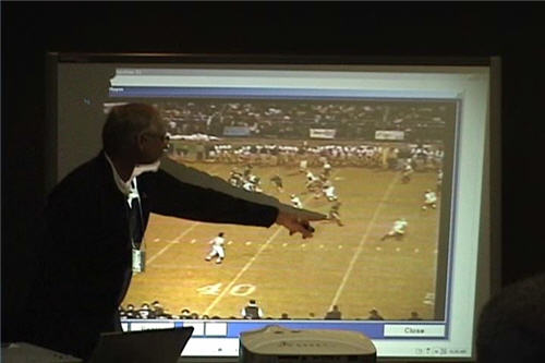 page of their presentation. Coach Bruce Cobleigh of Harrison High School